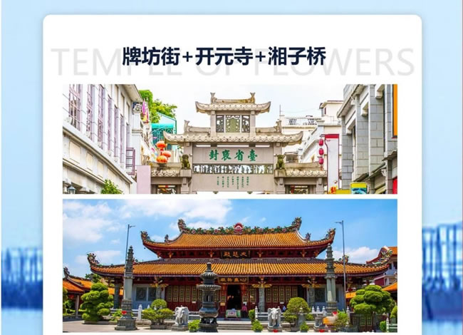 早餐后游覽【開元寺】(游覽時間不低于30分鐘)位于鯉城區(qū)西街,是中國東南沿海重要的文物古跡,也是福建省內(nèi)規(guī)模較大的佛教寺院。該寺始創(chuàng)于唐初垂拱二年(686年),初名蓮花道場,開元二十六年(738年)更名開元寺。現(xiàn)存主要廟宇系明、清兩代修建,南北長260米,東西寬300米,占地面積78000平方米。【西街】(游覽時間不低于30分鐘)是泉州較早開發(fā)的街道和區(qū)域,早在宋朝,它就已經(jīng)象征了泉州的繁榮,它還是泉州市區(qū)保存較完整的古街區(qū),保留著大量具有歷史原貌的建筑。前往前往【蟳埔村】(游覽時間不低于60分鐘),蟳埔村位于福建省泉州市豐澤區(qū)東海社區(qū)的一條小漁村,這里居住的是古時阿拉伯人的后裔。這里的女人們頭上戴著鮮花做的漂亮的簪花圍,戴著丁香耳墜,穿著大裾衫、寬腳褲,形成了一道獨(dú)特的風(fēng)情,她們和惠安女、湄州女一起并稱福建三大漁女,這里還有別具特色的民居“蚵殼厝”。體驗(yàn)潯埔村地方民俗,風(fēng)土人情?!九抠浰筒寤ǎw驗(yàn)潯埔漁村民俗】隨后前往平潭酒店入住休息。