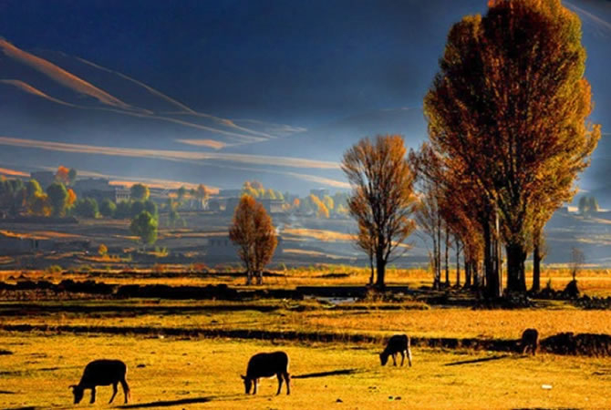 早餐后賞萬畝【青楊林】,數(shù)以萬計的青楊林像衛(wèi)兵守護(hù)著清清傍河,守望著天堂里的香格里拉,春天,一片碧波蕩漾,春意盎然,秋天則燦若云霞,金黃灑滿大地,無需裝飾就是一幅完美的自然畫卷。然后觀【色拉草原風(fēng)光】,翻越【波瓦山】,欣賞迷人的【赤土】河谷、前往令人神往的【亞丁景區(qū)】。我們將轉(zhuǎn)乘景區(qū)的觀光車,(觀光車費用:120元/人費用自理)翻越【牛郎神山】(海拔4760米),抵達(dá)目的地亞丁景區(qū)【扎灌崩】,步行十分鐘左右,到【沖古寺】,(藏語意為填湖造寺,海拔3900米)欣賞由草地、森林、小溪和嘛呢堆組成的天然沖古草坪,朝觀神山【仙乃日】(意為觀世音菩薩,海拔6032米)。然后乘坐電瓶車(約6.5公里,往返80元,單程50元,費用自理)或者步行(步行3個小時),到達(dá)【洛絨牛場】,遠(yuǎn)觀【夏諾多吉】(意為金剛手菩薩,海拔5958米),【央邁勇】(意為文殊菩薩,海拔5958米),站在央邁勇神峰下,轉(zhuǎn)身向后瞧去,由群山環(huán)繞著的寬闊峽谷間,森林、草地、溪流和睦地各守一方,這氣勢莽莽的自然景觀,讓人流連忘返。然后可步行或者騎馬(約3小時,騎馬往返費用自理)到達(dá)【牛奶?!?。因牛奶海和五色海海拔高,客人務(wù)必根據(jù)自身實際情況選擇自費騎馬前往游覽. (牛奶海在央邁勇的山坳里,呈扇貝形,中間是碧藍(lán)的雪水,四周雪山環(huán)繞,湖水清瑩碧藍(lán)以其玲瓏秀雅水色翠藍(lán)而著名)。繼續(xù)向前便到達(dá)美麗的【五色?!坑置浅绱?五色海由于光的折射下,產(chǎn)生五種不同顏色而得名:其真名為“單增措”,它位于仙乃日與央邁勇之間,海拔4600米,湖面呈圓形。面積0.7公頃,冰谷下伸至湖畔,雪山倒影湖面,呈現(xiàn)奇幻的色彩,是藏區(qū)著名的圣湖)。上山時可觀賞野生動物、高山花蕊、雪山森林、冰川、湖泊、河流,體驗人與自然和諧相處的天然妙趣,讓神山圣水與心共鳴,盡情沉醉在夢幻之地。下午6點返回景區(qū)門口。宿香格里拉鎮(zhèn)。