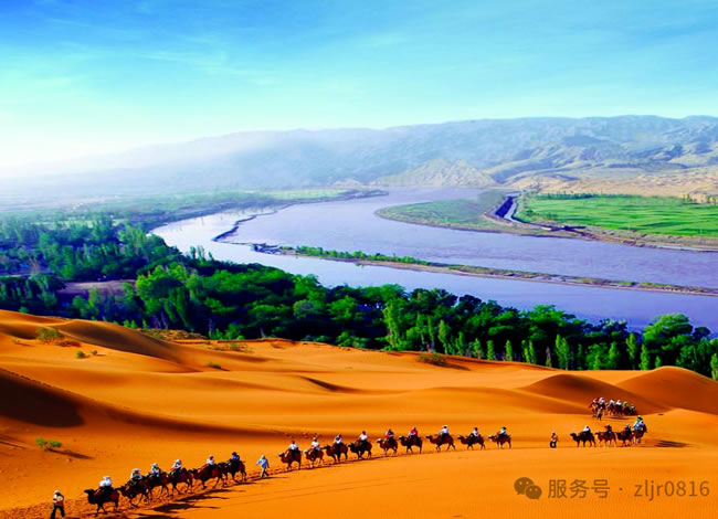 前往中國十大最好玩的地方之一的【沙坡頭】(游覽約2.5小時(shí)左右)這里集大漠、黃河、高山、綠洲為一體,地貌奇特,沙河相依,這里大漠黃河天工巧成,極具江南景色之秀美,又兼西北風(fēng)光之雄奇,被旅游界專家稱為“世界壟斷性旅游資源”。